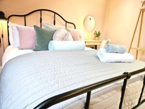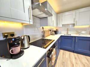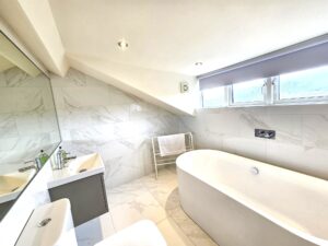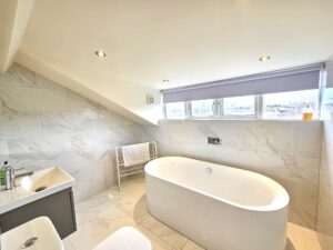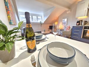 Within the apartment you will benefit from a beautiful free standing bath with views of the city, heated towel rail and complimentary extras to make your stay more comfortable. We also provide all linen and towels required for your stay making your stay a real home from home.