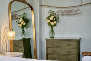 This home from home has high-quality touches such as local artwork, quality toiletries, cotton linen, instant hot water quooker tap, , bespoke lighting, Laura Ashley duvets, Samsung smart TV’s, Bauwerk limewash painted walls and antique furniture will ensure you won’t want to leave, and give you a cosy York feel.